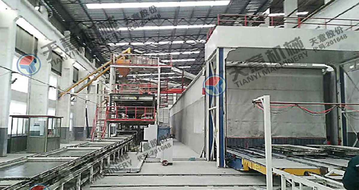 多功能墻板生產(chǎn)線,可生產(chǎn)“三明治”夾芯板,鋼邊框屋面板、樓面板,不帶面板復(fù)合板。生產(chǎn)線主要分為自動(dòng)配料系統(tǒng)、攪拌系統(tǒng)、發(fā)泡系統(tǒng)、中央控制配電系統(tǒng)、輕質(zhì)混凝土布料系統(tǒng)、磨光系統(tǒng)、模具循環(huán)系統(tǒng)、養(yǎng)護(hù)系統(tǒng)、碼垛系統(tǒng)等部分組成。